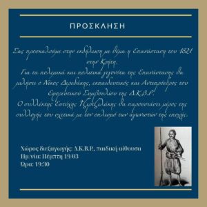Την Πέμπτη 19 Μαρτίου πραγματοποιήθηκε στην Δημόσια Κεντρική Βιβλιοθήκη Ρεθύμνου εκδήλωση για την Επανάσταση του [...]